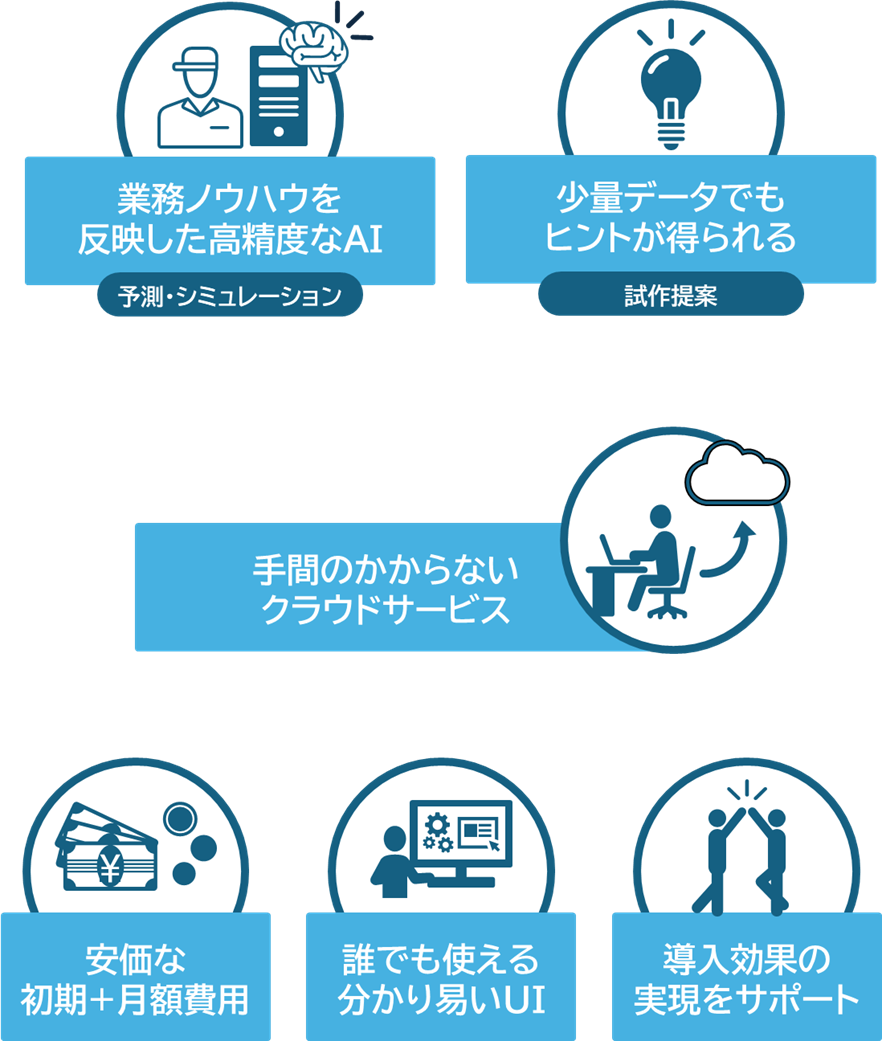- 最適な製造条件・配合レシピの予測シミュレーションを安価なA I サービスで実現!